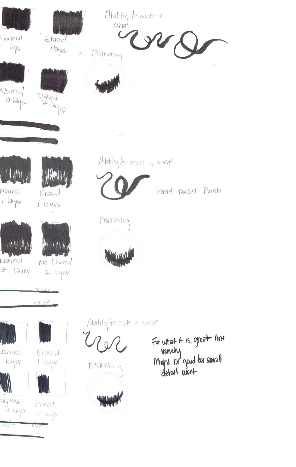 I've been told, and had always assumed, that the Pentel Pocket Brush is the best and cheapest brushpen available. Commonly sold in art stores, and easily available online, it is certainly the best cheap brush you're going to find. However, the ink is extremely thin, and this has caused me problems in the past, so I decided to put the Pentel Pocket Brush, and several other brushpens, to test.