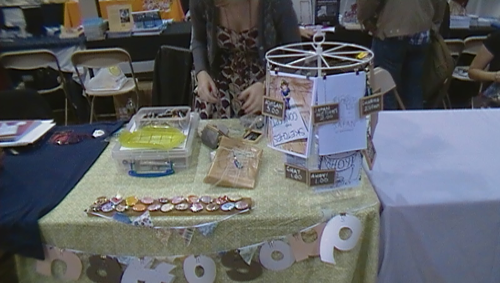 I try to learn something at every convention I attend, and MoCCA was no exception. Cartoony erotic art is in demand right now, and parents have a hard time telling at a glance which vendors sell kid friendly stuff. Everything at my table is kid friendly, and it's time to invest in a banner advertising that. At past conventions, I've taken a suggested 'hands off' approach, but I've found that I make my best sales when I engage the crowd. Maybe it's just that they feel guilty, or maybe even sorry for me, but even pity money is green and fills my cashbox. It's also probably time to switch to a larger table, as my setup's gotten a bit crowded and it's hard to see everything.