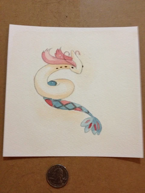 All of these mini watercolor paintings were painted on cold press watercolor paper, either Fluid or Strathmore. The Strathmore pad and artist trading cards were sent to me by Chris Paulsen, the creator of Precocious and a good friend of mine, in exchange for a Milotic watercolor I need to mail.