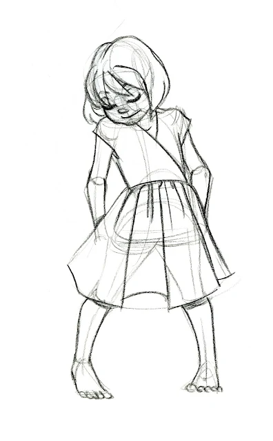 For those of you who've noticed that I often sketch with color pencils, and may be wondering why I do so, the reason is because it allows me to loosen up, without having to wait for ink to dry. Sketching with permanent or semi permanent materials like ink, china marker, or color pencil is a great way to work on being more decisive, as it removes the ability to erase repeatedly. I do not recommend this for production work, but I've found it's a great way to create more gestural, less fussy sketches, and it removes the mental burden of trying to make things perfect.