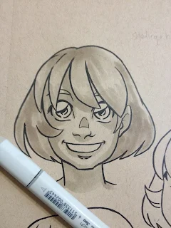 If you're interested in how I render darker skintones, check out my step by step process for Naomi in my Walmart Art Supply Review of Pacon marker paper.