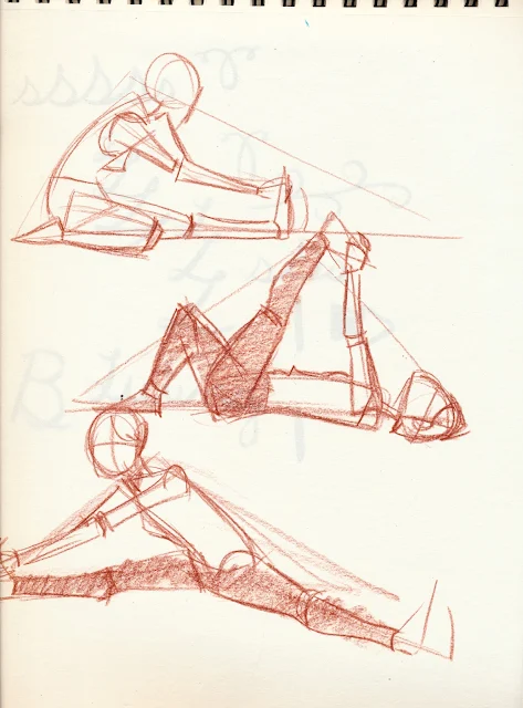 When doing gesture sketches, I try to find a basic overall shape and work within that. I've found that with yoga, the majority of gestures are triangular- perhaps because this is one of the sturdiest shapes.