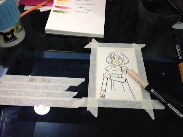 Field test was completed on Fabriano cotton rag watercolor paper. Illustration was inked with the Copic and waterproof Sailor Mitsuo Aida.