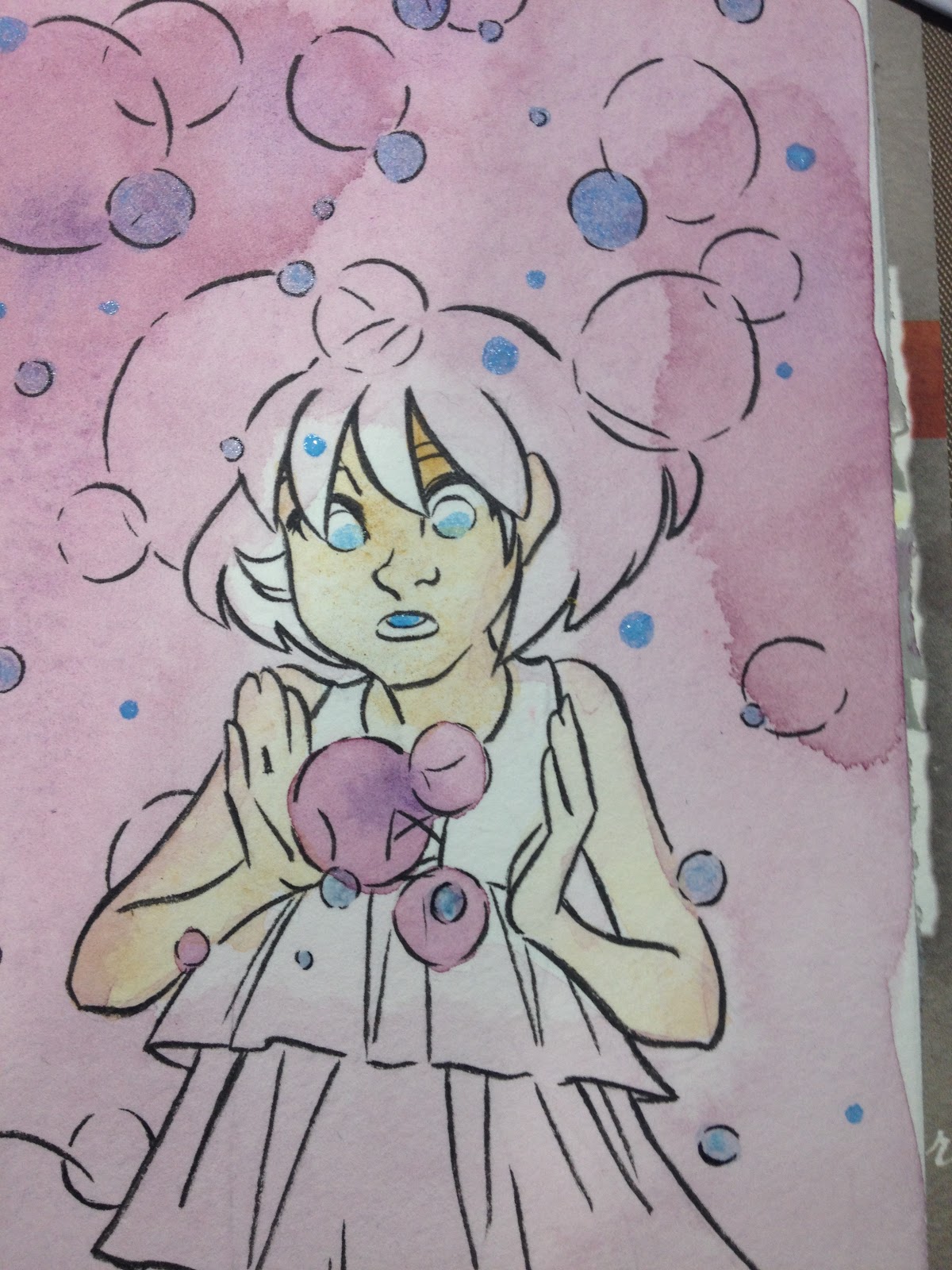 I mixed my first layer of wash, to help establish the tone for everything, and to tint areas of Kara that wouldn't be lit by the fireflies.