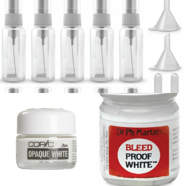 These inks are pigmented, which makes them opaque. Not suitable for spray bottles, and marker suitability still pending.